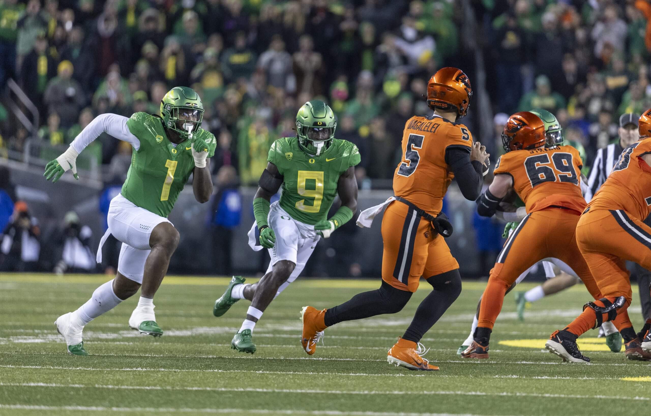 Biggest game: A year removed from similar stakes, a Rose Bowl bid and the Pac-10 title were at stake when the Ducks and Beavers clashed on a Thursday night in December 2009. The teams exchanged leads six times entering the fourth quarter, then Oregon kept the ball for the final 6:09 to preserve a 37-33 win.