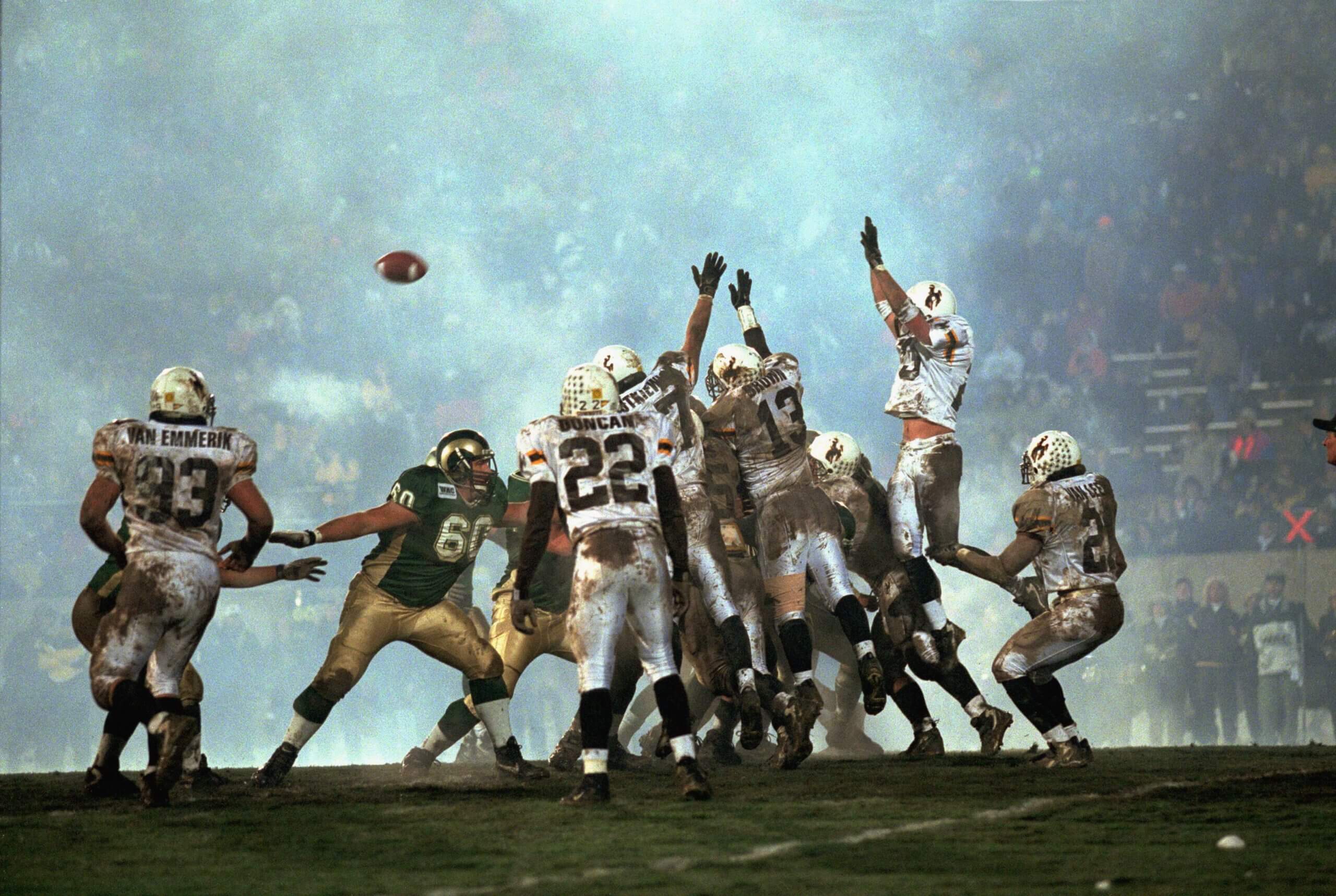 Biggest game: Every year from 1989-2003, at least one team was ranked entering their matchup. But the sizzle from their late-night 2023 double-OT battle boasted more than 9 million television viewers. Colorado QB Shedeur Sanders’ 45-yard TD pass with 36 seconds forced OT. After both teams scored in the first OT, Sanders fired his fourth TD pass and a 2-pointer to give the Buffaloes a 43-35 lead that held up after a defensive stand.