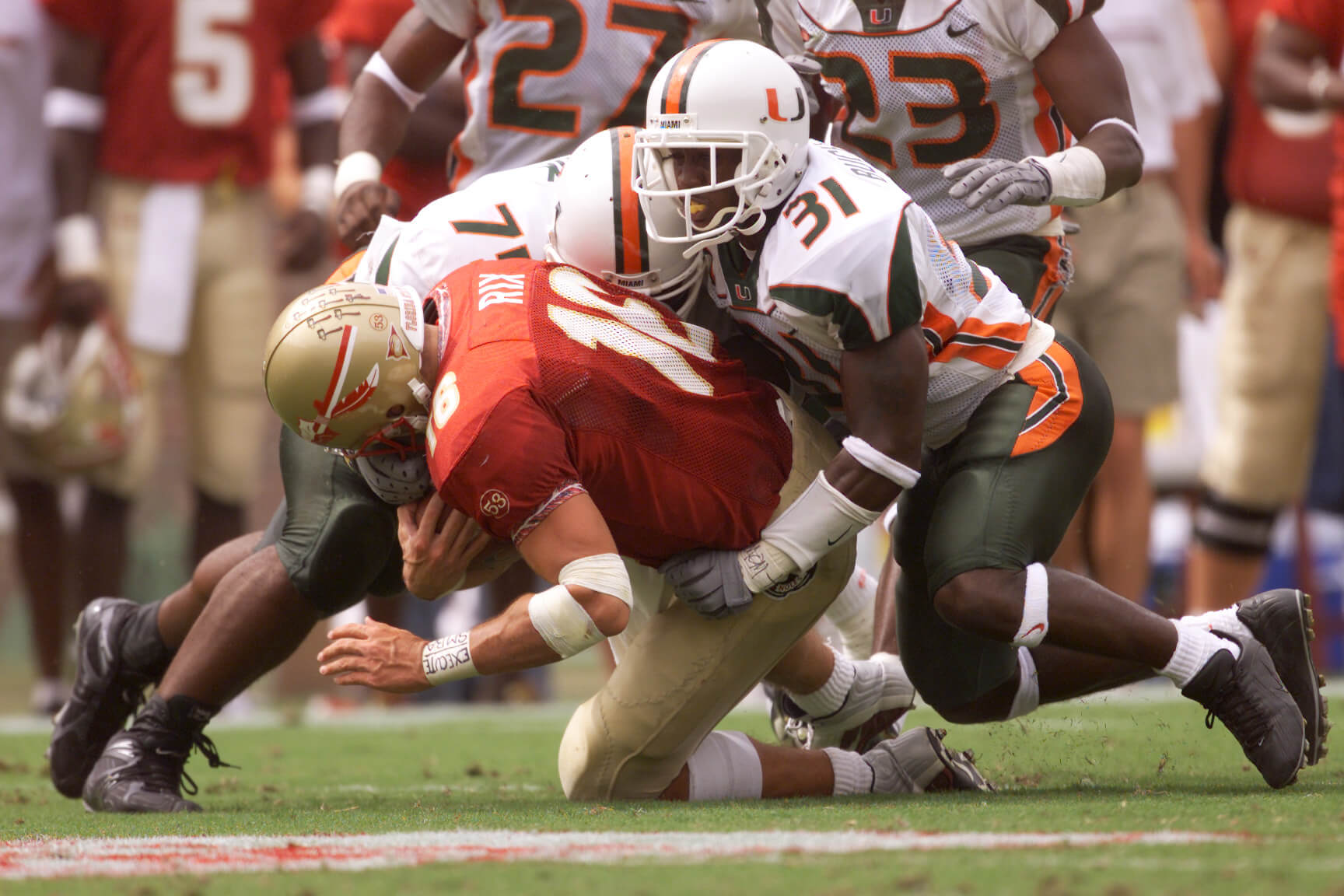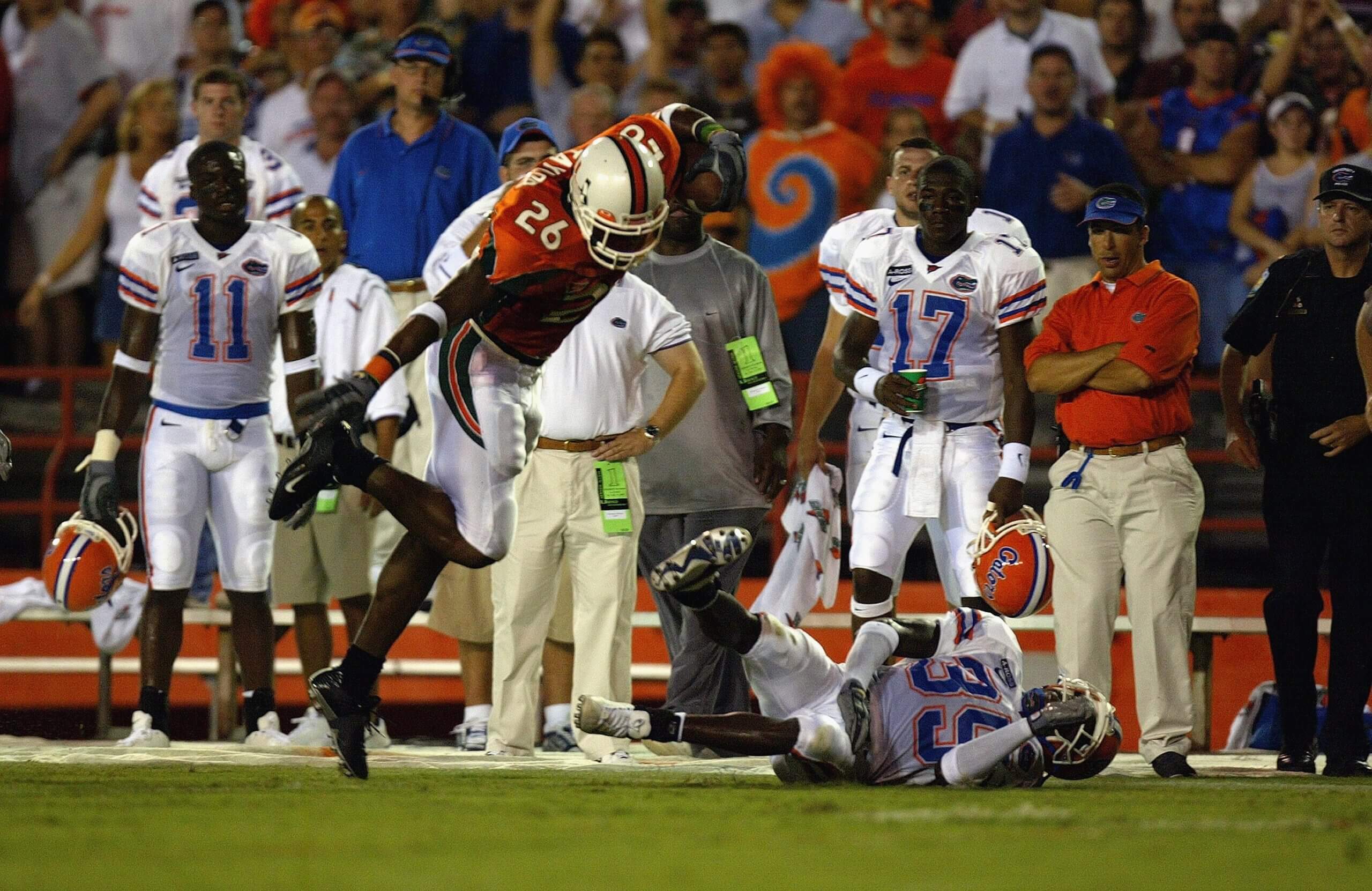 Biggest game: In a 1991 clash of unbeatens, No. 1 Florida State and No. 2 Miami had winning streaks of 16 and 14 games, respectively, and the winner had the inside track on a national title. The Seminoles led by nine in the fourth quarter before the Hurricanes’ comeback gave them a 17-16 lead. In what has been called “Wide Right I” as the first in a string of dramatic games that came down to kicking problems, Florida State missed a 34-yard field goal with 25 seconds left to hand the game — and ultimately the national title — to Miami.