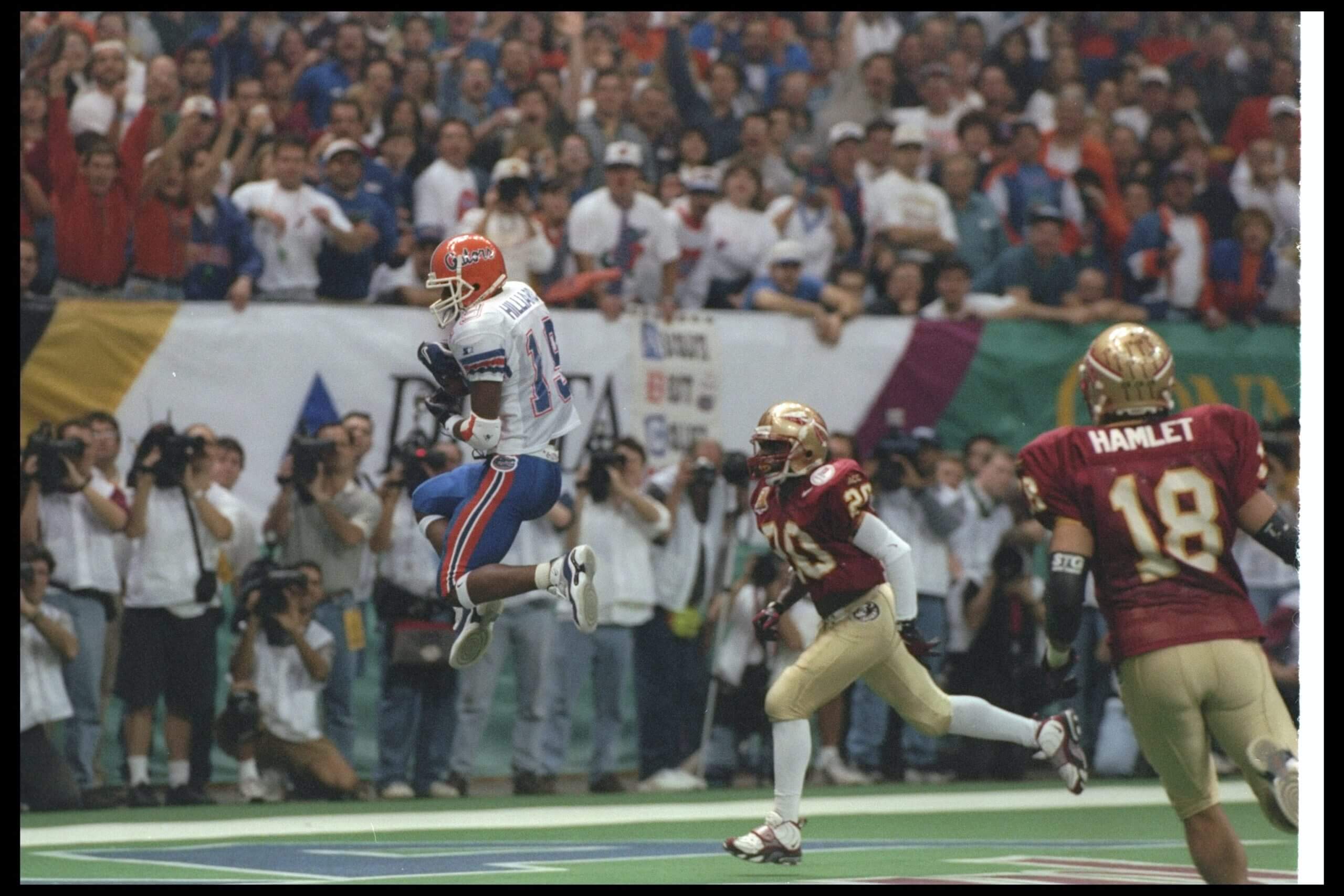 Biggest game: In the 1996 regular-season finale, No. 2 Florida State edged No. 1 Florida 24-21 and the quarterback hits rankled Spurrier. After Florida won the SEC title game, the Bowl Alliance lined up the No. 1 Seminoles and No. 3 Gators for the fifth time over a three-year span, again in the Sugar Bowl. Florida led by four points in the third quarter, then scored four second-half touchdowns in a 52-20 win. The Gators won the national title while Florida State fell to No. 3.