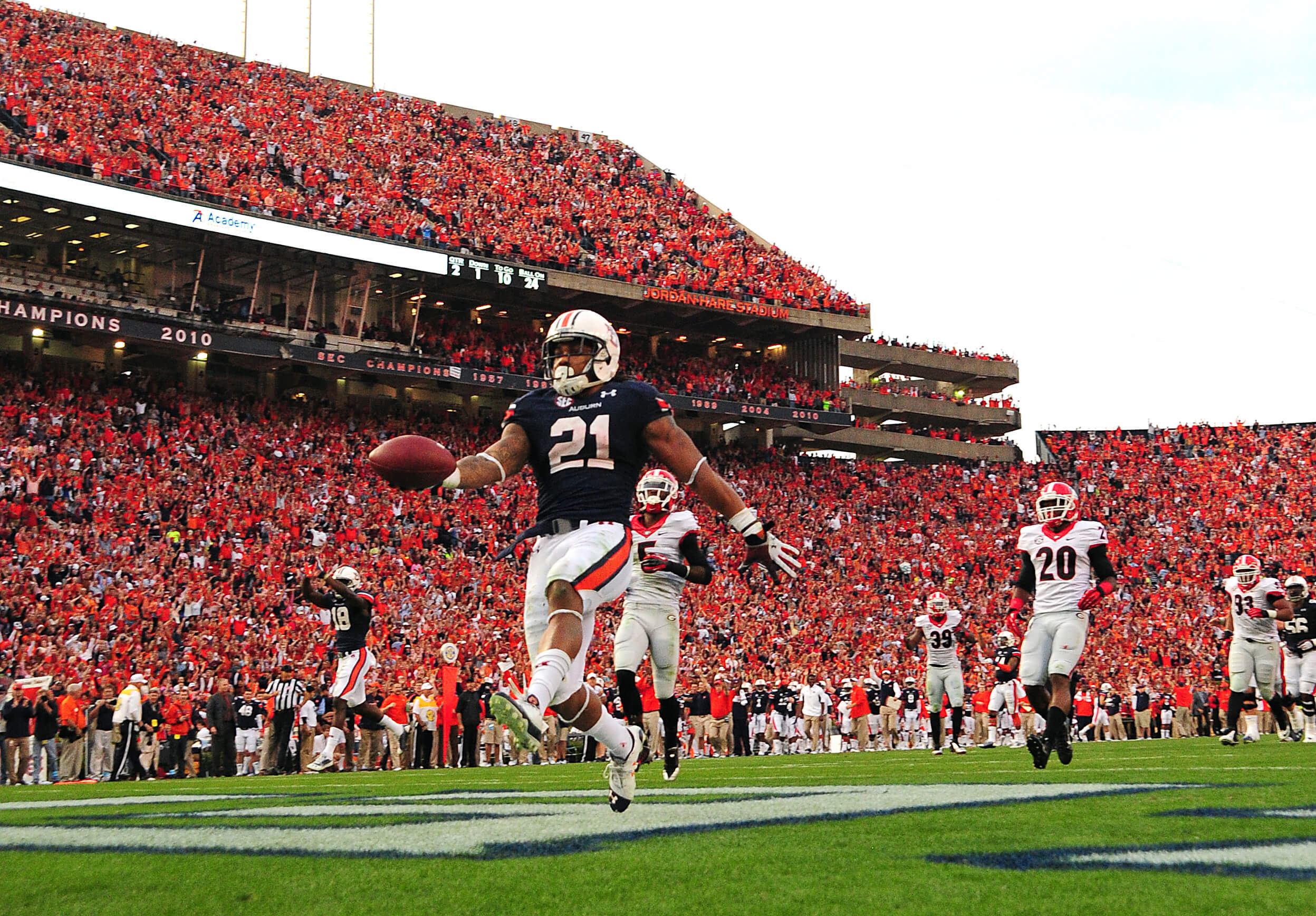 Biggest game: The first of two improbable victories for No. 7 Auburn in 2013 took place at home against No. 25 Georgia. With the Bulldogs leading 38-37, the Tigers faced fourth-and-18 with 36 seconds left. Nick Marshall launched a pass down the middle that was tipped into Ricardo Louis’ hands for a 73-yard TD and a 43-38 win. It’s known as “The Prayer at Jordan-Hare.”