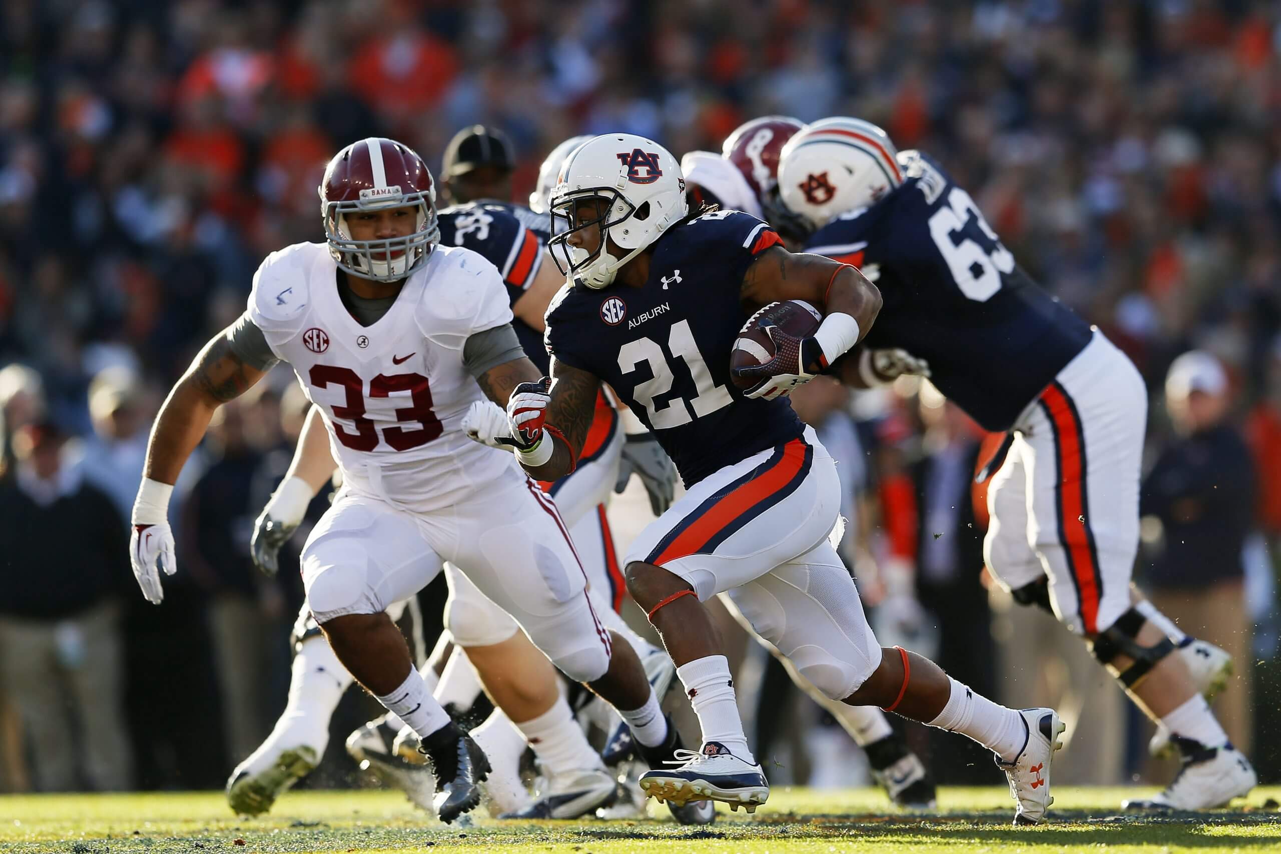 Biggest game: With a spot in the SEC championship at stake in 2013, No. 1 Alabama traveled to No. 4 Auburn. With the score tied at 28-28, Alabama kicker Adam Griffith attempted a 57-yard field goal on the game’s final snap. It was short and Auburn’s Chris Davis caught it in the end zone. Davis darted up the middle, then bent to the left. He raced up the sideline for the game-winning touchdown in a 34-28 win. Perhaps the greatest play in college football history, it’s forever known as the “Kick Six.”