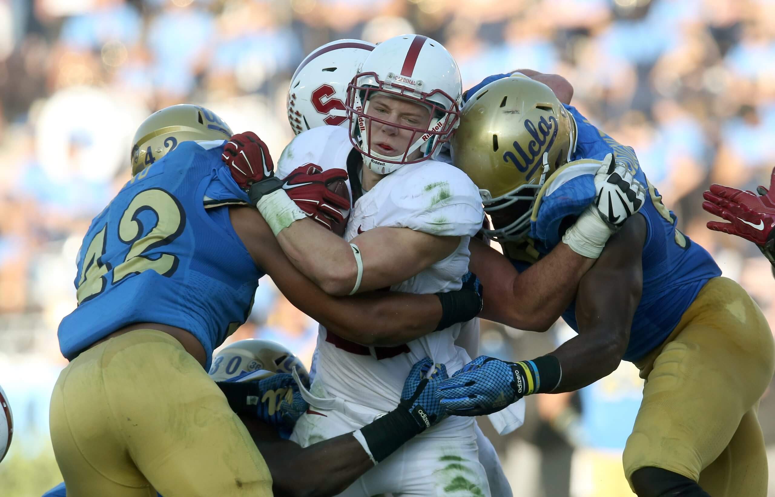 Biggest game: Behind John Elway’s final drive heroics, Stanford took a one-point lead with 4 seconds left that seemingly was going to send the Cardinal to the 1982 Hall of Fame Bowl. But on the ensuing kickoff, Cal lateraled the ball five times, with Kevin Moen collecting it first and receiving it last. Moen burst through the Stanford band gathered near the end zone and crossed the goal line for perhaps college football’s most incredible ending in a 25-20 Cal victory.