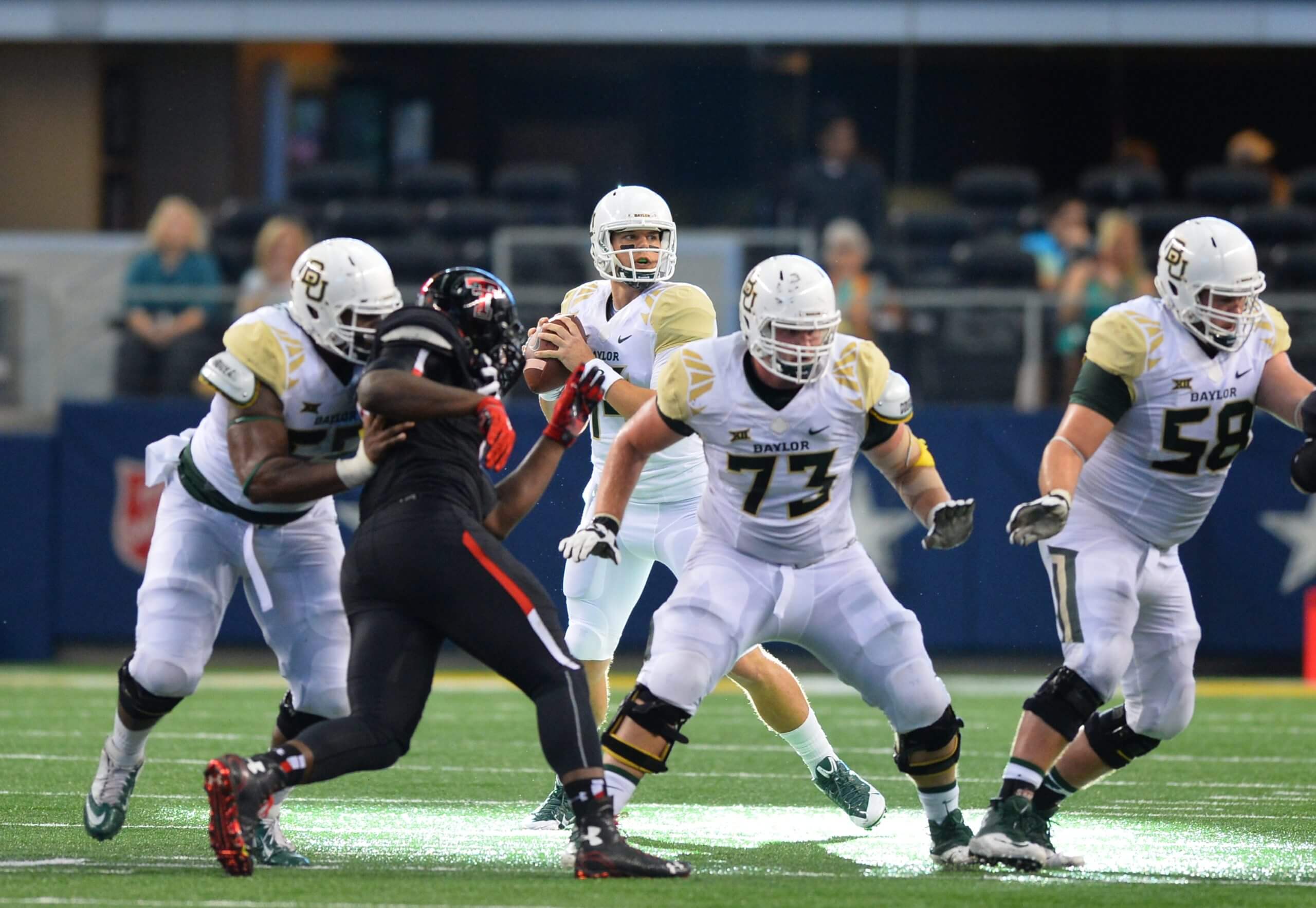 Biggest game: On Black Friday 2014, Baylor needed a win to keep pace with TCU for a Big 12 championship, and it led Texas Tech 45-20 with 17 minutes to play. Texas Tech QB Patrick Mahomes then torched Baylor the rest of the game with four TDs passes — all beyond 40 yards — to pull the Red Raiders within 48-46 with 1:42 left. Mahomes’ 2-point run fell short, and the Bears prevailed despite Mahomes’ 598 yards and six TDs.
