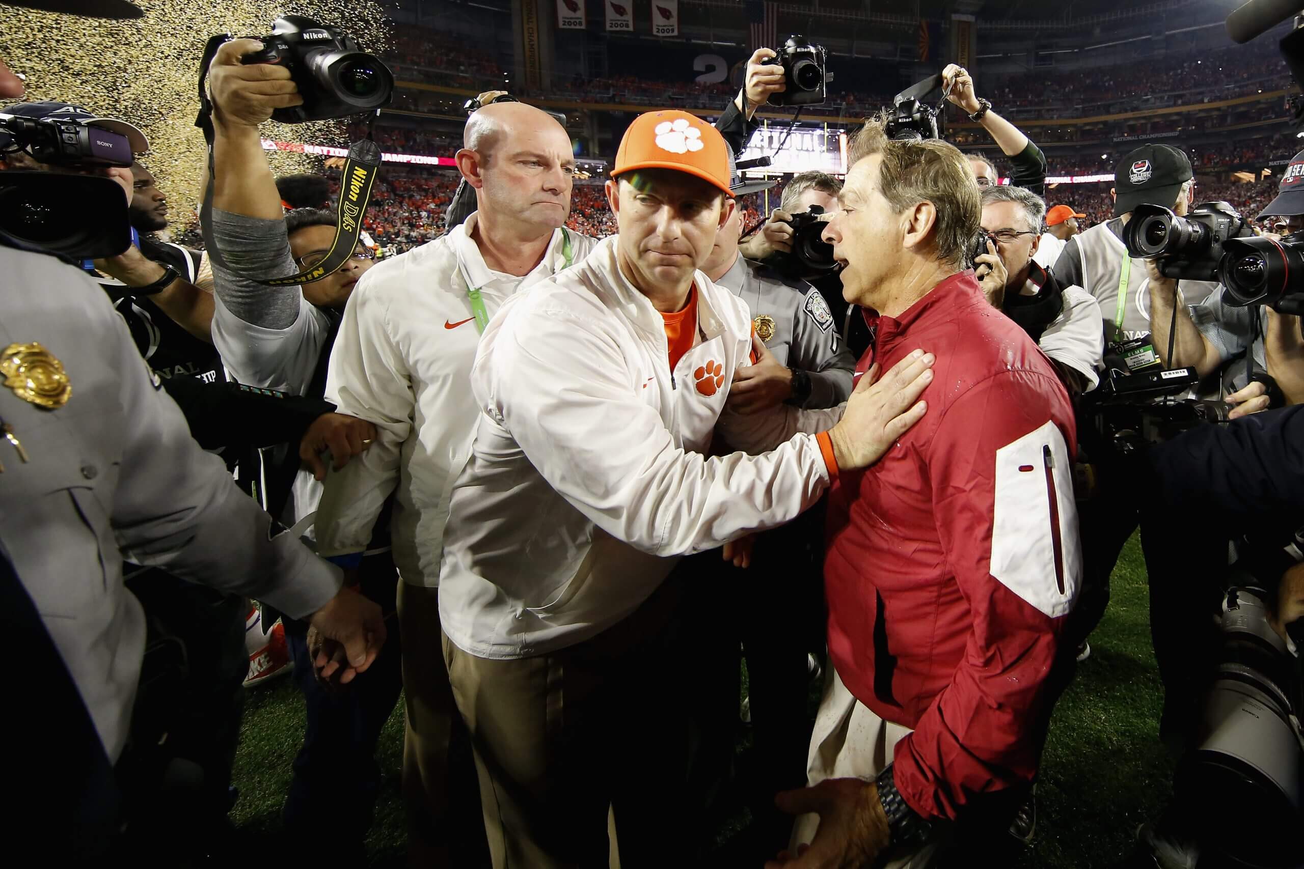 Their 66 games make this the most-played nonconference series for both schools outside of their in-state rivalries.Since 1980, each team has won three national titles, and they met in the regular season in three of those years. Georgia won 20-16 in 1980 and 10-3 in 2021, while Clemson won 13-3 in 1981. The Bulldogs also claimed the 2022 title, while Clemson earned titles in 2016 and 2018.Georgia’s Kirby Smart and Clemson’s Dabo Swinney are two of just three active FBS coaches with national titles, joining Ohio State’s Ryan Day. Smart and Swinney both have two.
