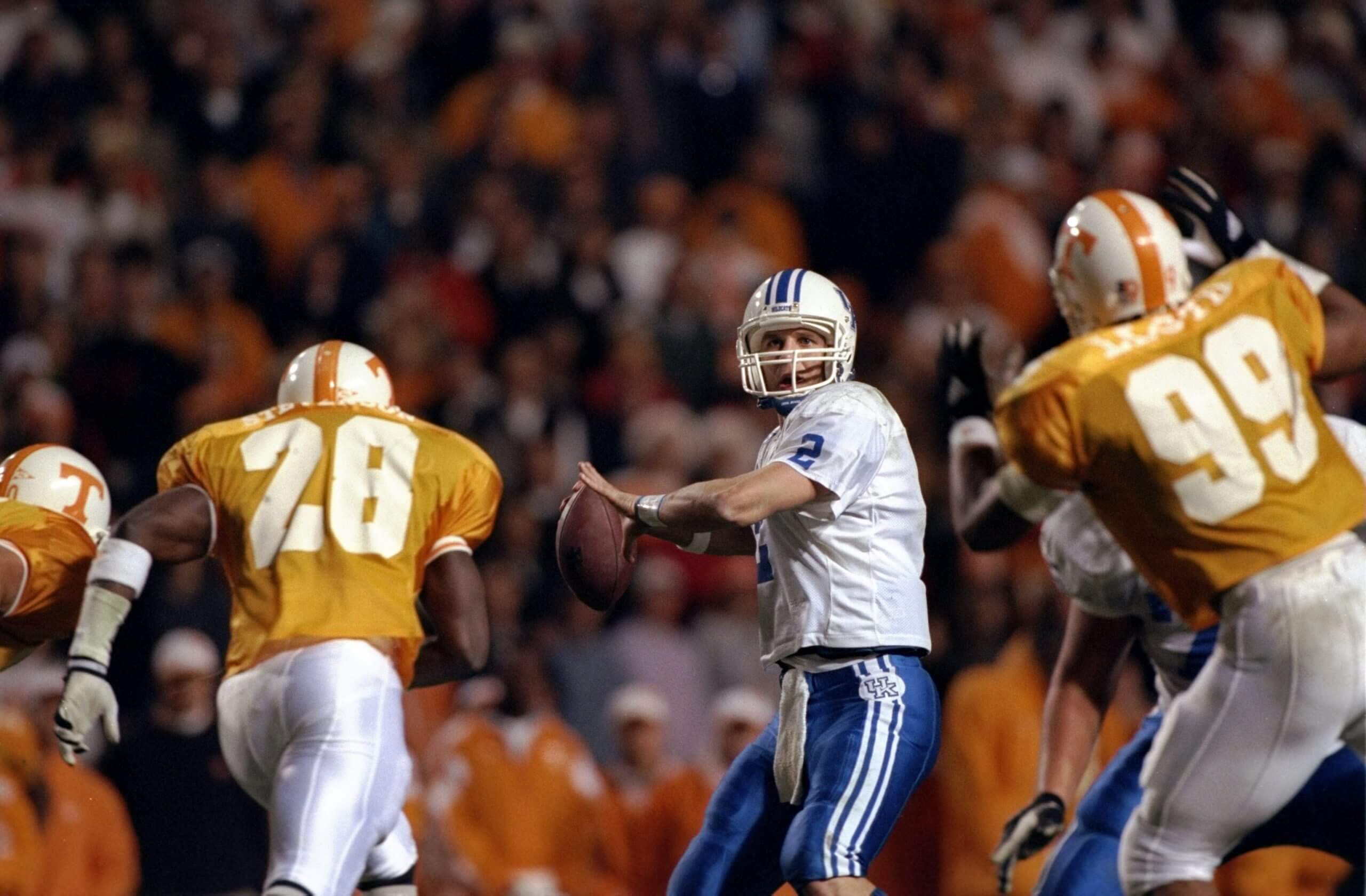 Biggest game: The hammer-vs.-nail history doesn’t leave much for great games, but their 2007 edition was a classic. The Wildcats featured one of their best teams and Tennessee was in position to claim the SEC East crown with a win. Kentucky QB Andre’ Woodson threw six TDs to erase a 17-point deficit. Trailing 52-50 in the fourth OT, Woodson’s 2-point run fell short and the Vols — behind QB Eric Ainge’s seven TDs — held on.