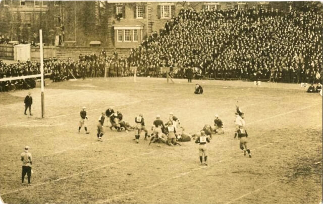 Biggest game: In 1968, Yale entered “The Game” on a 16-game winning streak and both teams were 8-0. The Bulldogs led Harvard 29-13 midway through the fourth quarter before the Crimson cut its deficit to eight points with a TD and 2-pointer with 42 seconds left. Harvard recovered the onside kick and scored a TD and a 2-pointer with no time left for the tie. The headline in The Crimson student paper said it all: “Harvard beats Yale 29-29.”