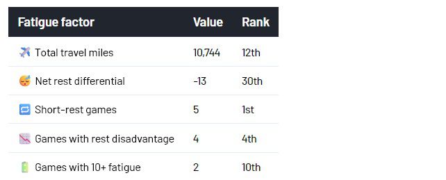 Our model calculates a weekly fatigue score for every team based on travel distance, rest days, time zone changes, circadian misalignment, altitude, and progressive wear and tear before adding it up across all 18 weeks to determine which teams face the most grueling schedules in 2025.
