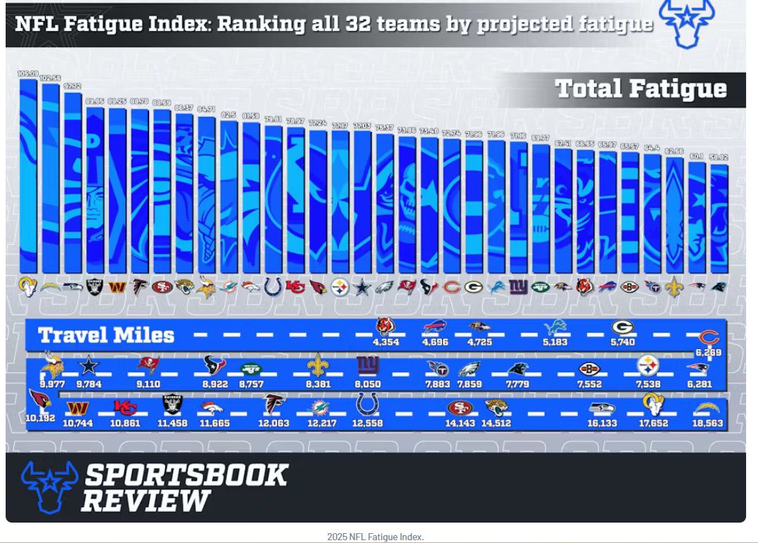2025 NFL Fatigue Index: Ranking All 32 Teams by Travel, Rest & Schedule Quirks