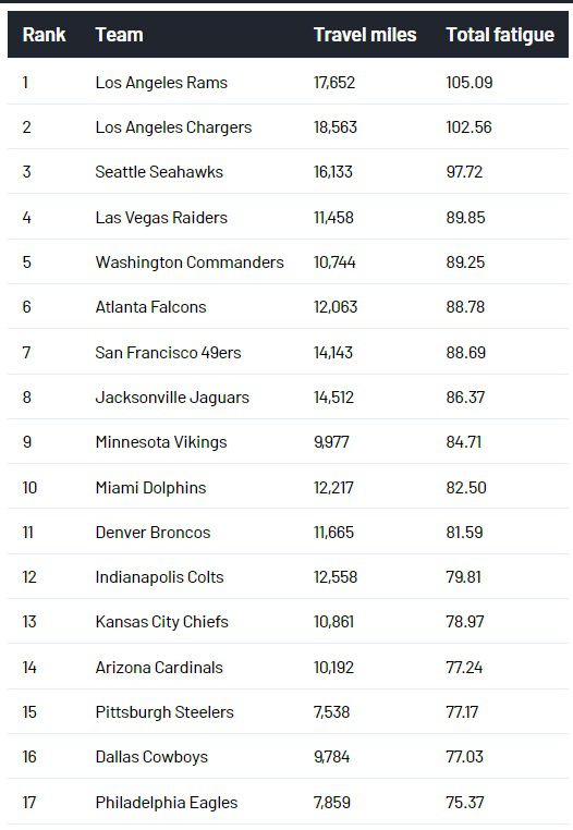 Bookmark this page and check back each week during football season as we break down the best and worst schedule spots based on weekly and total fatigue across the 2025 NFL season.