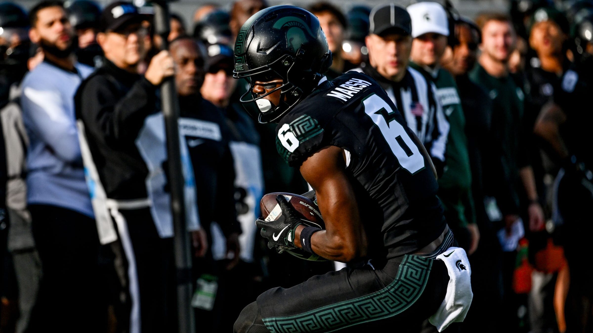 Michigan State’s Nick Marsh catches a pass against Indiana. (Photo by Nick King/Lansing State Journal)