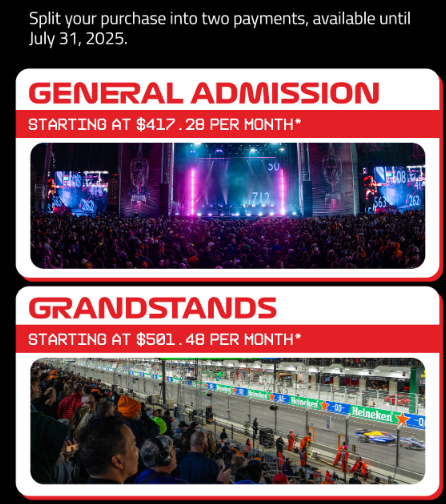 The Las Vegas Vegas Grand Prix even suggested that fans buy tickets before July 31 and get the chance to pay off their tickets over two months.