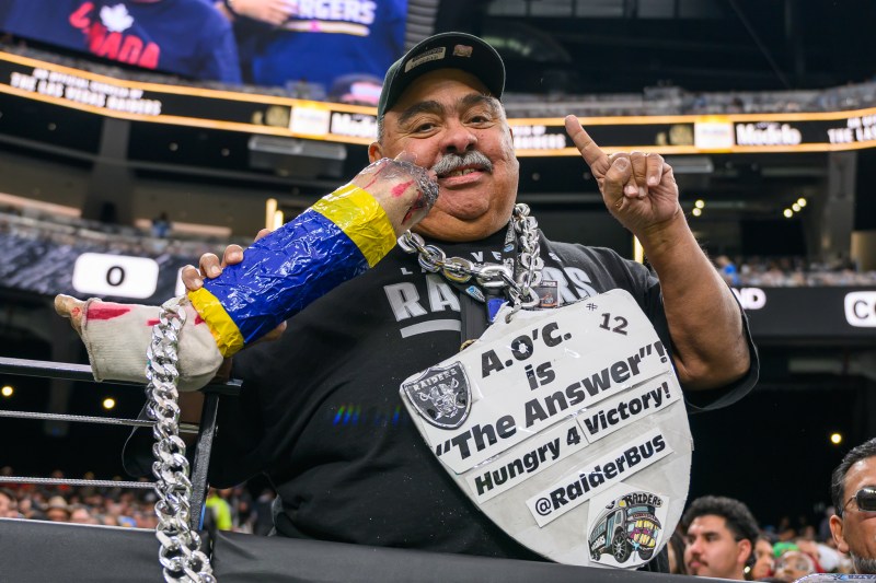 Andy travels from Northern California in his Raiders bus that hosts pregame tailgate parties.