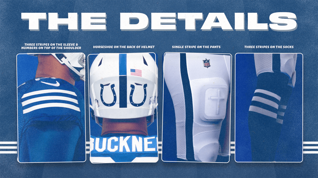 We have two potential solutions. One would be to switch the helmets from black to white and add a nod to the team’s roots in Baltimore with the “Bucking Horse” logo in speed blue. That logo’s already being used by the franchise in throwback campaigns.