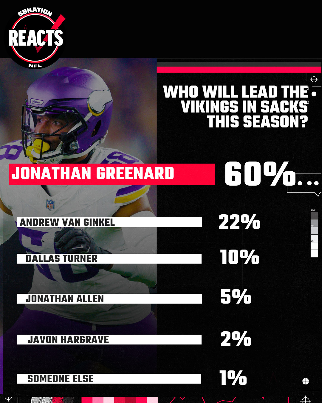 Our other question was who you thought would lead the Vikings in sacks in 2025. There were no shortage of candidates for this one, but the results were a little more one-sided than I thought they might be.