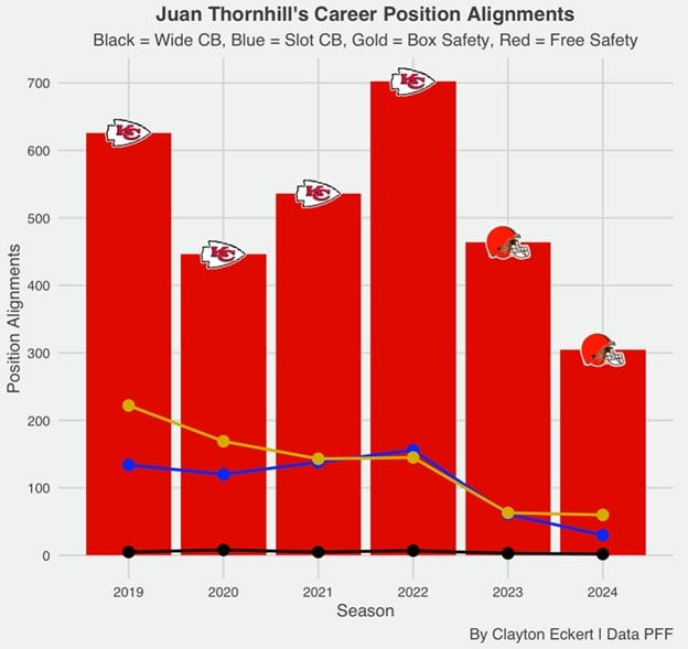 While he hasn’t gotten the same buzz as these men, a third offseason addition was S Juan Thornhill. Here’s a similar view of his experience: