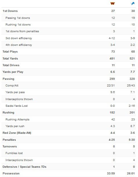 Washington boasted the #5 scoring offense in the league, meaning that it had the horsepower needed to challenge Detroit’s league-leading offense in point-scoring.