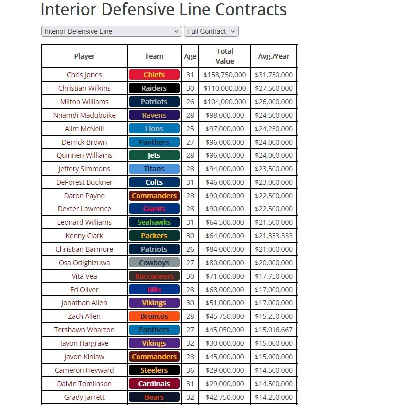 The Commanders were clearly eager to replace Jonathan Allen, who was released just before the start of free agency. However, Kinlaw, who had just five tackles for loss and 12 QB pressures in 2024, is unlikely to play up to his $15 million-per-year contract.