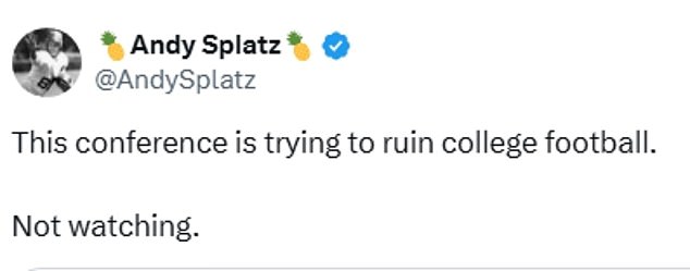 Another said, ‘This conference is trying to ruin college football. Not watching.’