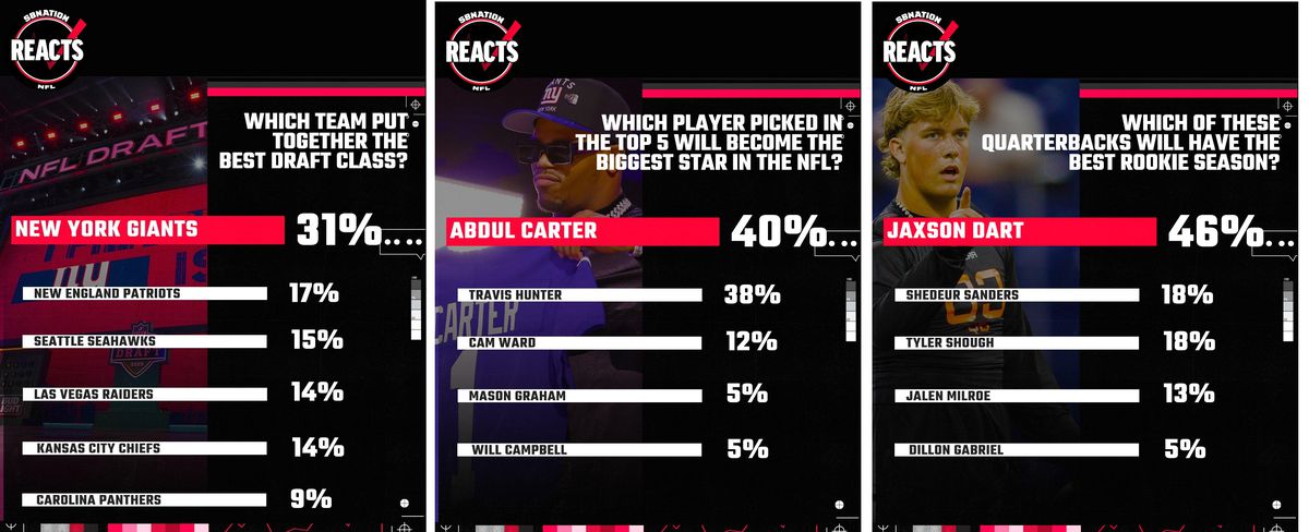 The New York Giants had, by far, the best 2025 NFL Draft class, according to voters in this week’s SB Nation ‘NFL Reacts’ national survey.