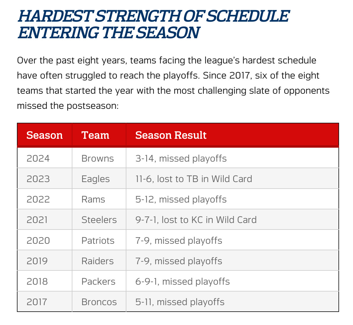 On the face of it, the situation does not look good. Here’s what happened to the teams facing the toughest schedule the past eight years: