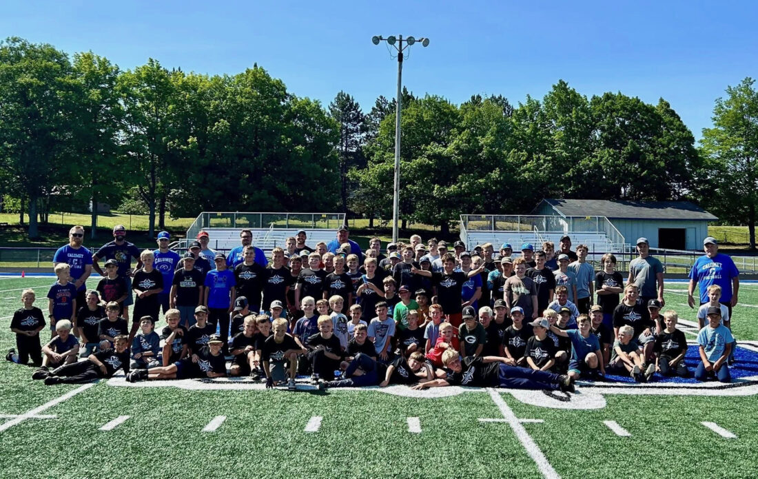 The students and coaches pose after the session of the 2nd Annual Copper Country Youth Football Camp on Wednesday, July 9, at Agassiz Field in Calumet. (Provided photo)