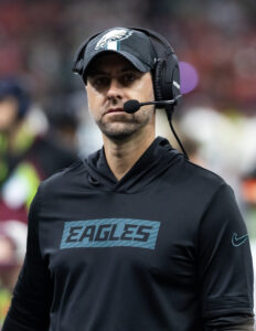 Sirianni’s .706 win percentage through four seasons trails only John Madden and George Allen in the Super Bowl era. In terms of coaches hired since free agency’s 1993 debut, Sirianni stands atop the board. The 44-year-old leader does not garner respect on the level of a Sean McVay or Kyle Shanahan among coaches in his age range, but he has now managed to reach Super Bowls with different OCs and DCs. Sirianni has also been the constant for Jalen Hurts, as Philly is now on play-caller No. 4 since the HC gave up the reins.