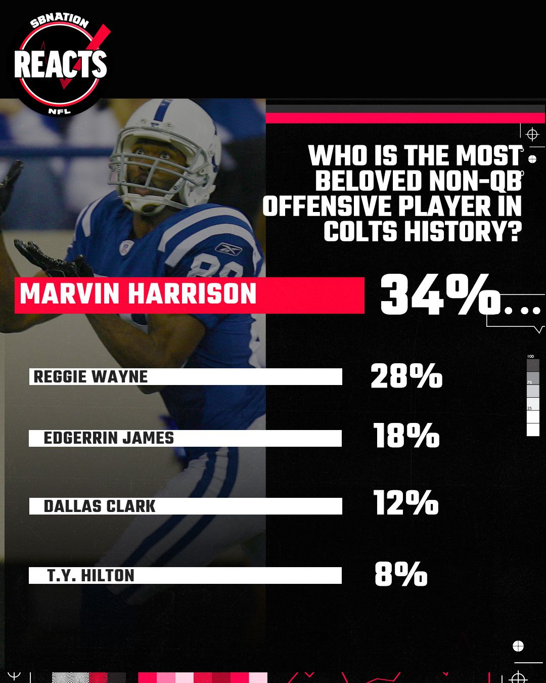 34% of Colts fans went with the best wideout in franchise history and NFL Hall of Famer, Marvin Harrison, who was one of the best to ever do it in NFL history—pairing with Manning.