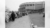 Fans line up outside the old RFK stadium in Washington in this historic photo from the Washington Commanders.