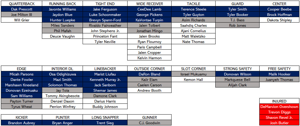 Because of position group needs, this isn’t likely to stick. The Cowboys aren’t keeping five running backs, and they’re not rolling with just four healthy corners. Some finagling will need to happen, but this list still gives us an idea of what the roster might look like. Again, there’s a lot of time before final roster cuts, so let’s see how things play out, and we’ll check in later to see what’s changed.