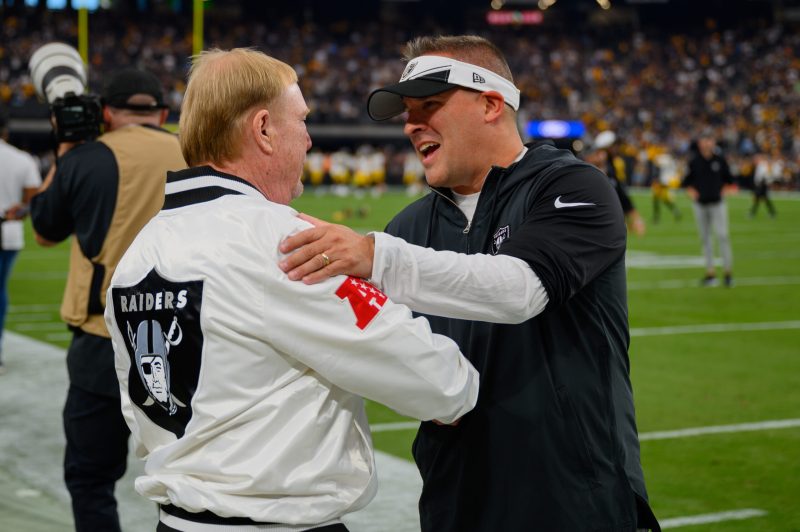 Raiders owner Mark Davis and his coach, Josh McDaniels, before the Raiders-Steelers home-owner for the Raiders in Las Vegas.