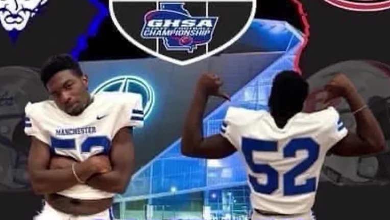 Teammates from Manchester High School honor 17-year-old defensive line Brandon Smith, whose body was found the day prior to the state championship game, at Mercedes-Benz Stadium in Atlanta on Dec. 11, 2023. (FOX 5)