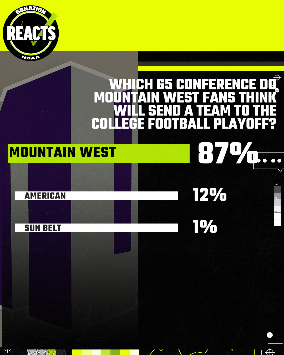 Granted this is a Mountain West site poll going out to fans of Mountain West teams, but the overwhelming majority of voters think the MW is the heavy favorite to return to the College Football. Playoff in 2025. It should be noted all 5 mid-major conferences were put in this poll.