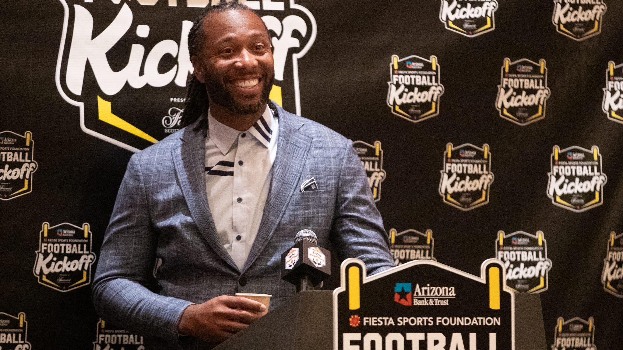 Larry Fitzgerald speaks at the Fiesta Sports Foundation Football Kickoff