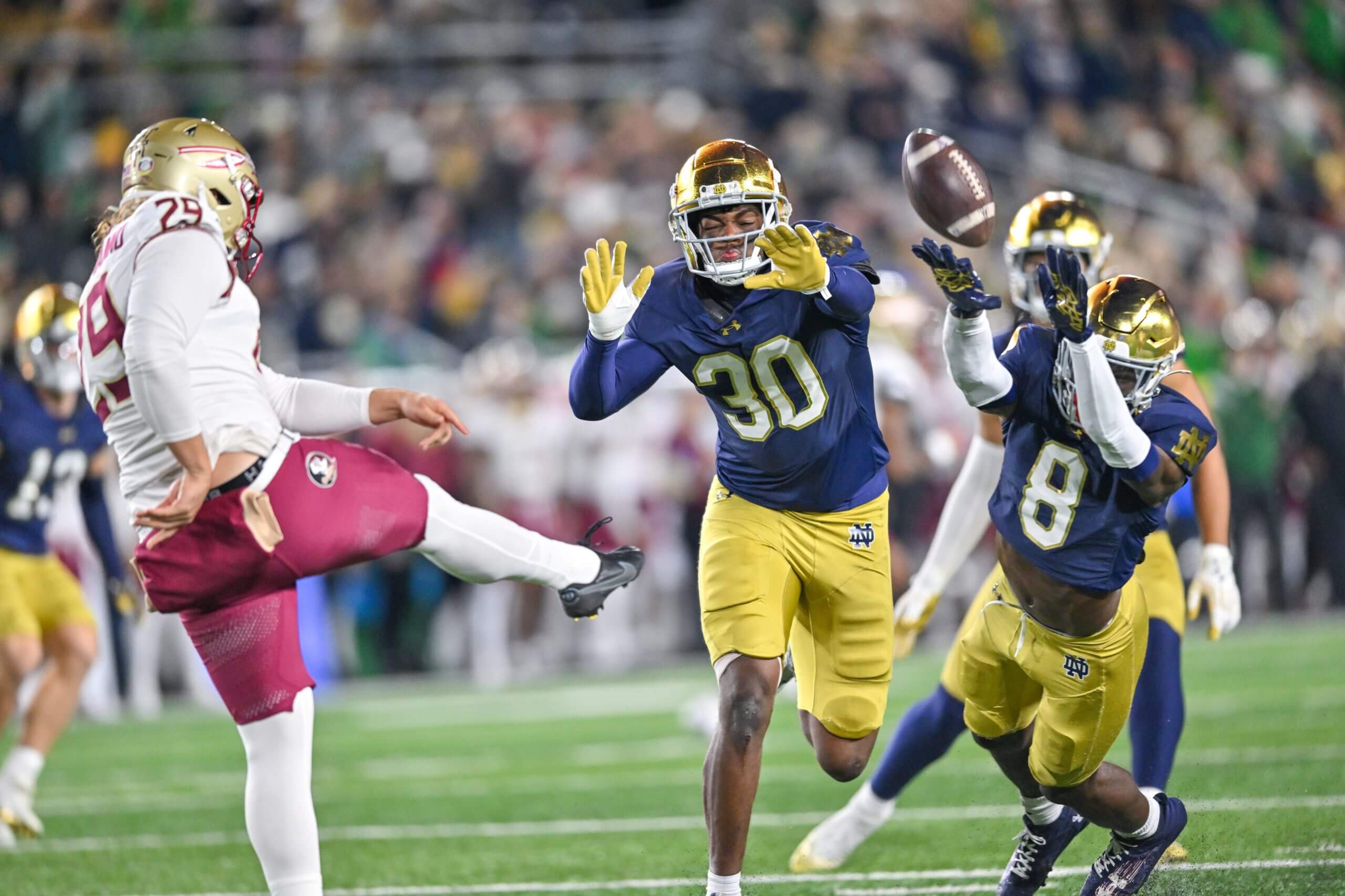 “We ran out of weights for him to max squat,” said head coach Brian Kelly. “It’s a 650-pound max squat. I throw that out to you to show how powerful he is. He’s such a great kid. He’s grounded every single day, he has elite strength and he’s going to play a major role in what we do.”