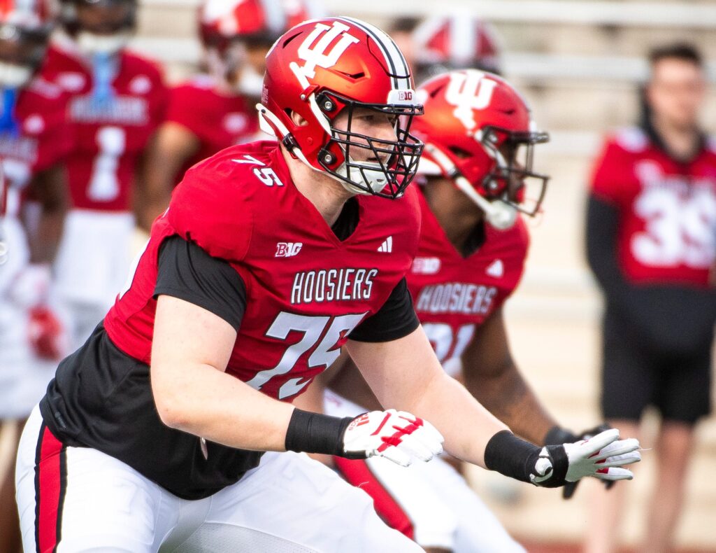 Indiana’s Trey Wedig (75) during practice at Memorial Stadium on Tuesday, March 26, 2024.