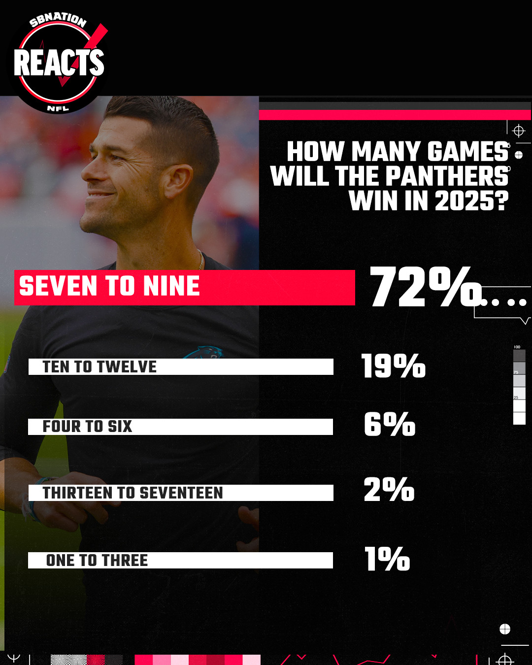 Seven to nine wins, as a prediction, suggests that fans think the Panthers have an outside shot at their first winning season since 2017. For context for those of y’all who don’t know how to measure time back through the COVID-19 pandemic, 2017 was Christian McCaffrey’s rookie season.