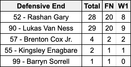 Behind them, there’s uncertainty. Van Ness, as a non-starter, already played 428 snaps on defense last year, which was on par with Kingsley Enagbare’s 511. Enagbare was the team’s starting defensive end following the trade of Preston Smith to the Pittsburgh Steelers. On top of that, Van Ness also played 221 snaps of special teams in 2024, which was the fourth-most on the team. Enagbare isn’t too far behind him with 184 of his own there.