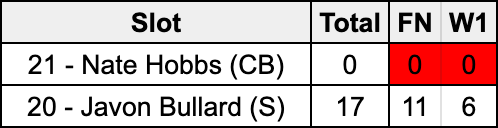 Nate Hobbs, who at minimum will be starting at outside cornerback in two-cornerback sets for the Packers, missed Saturday’s action due to his recovery from meniscus surgery. Green Bay has options when Hobbs returns, including kicking him inside to the slot position in nickel sets where five defensive backs are on the field together.
