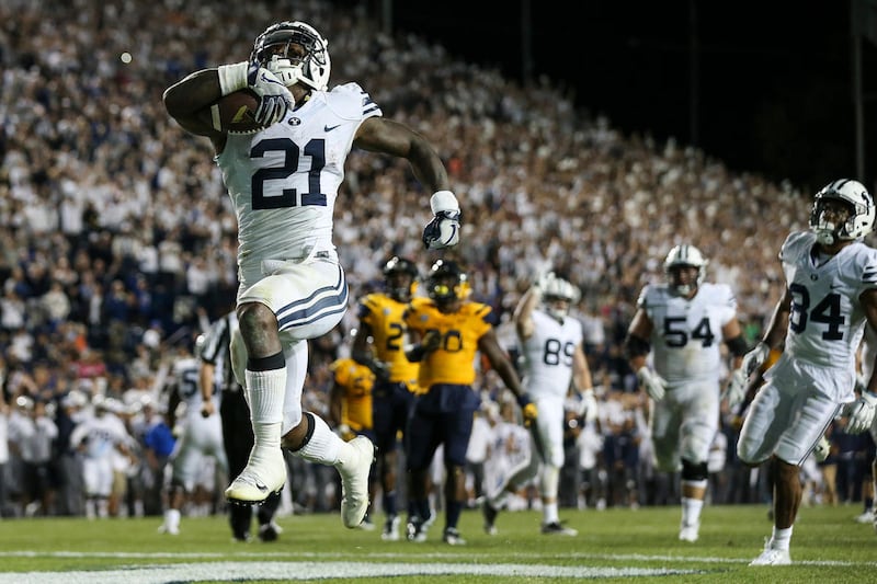 BYU running back Jamaal Williams scores a touchdown against the Toledo Rockets at LaVell Edwards Stadium in Provo on Friday, Sept. 30, 2016. | Spenser Heaps, Deseret News