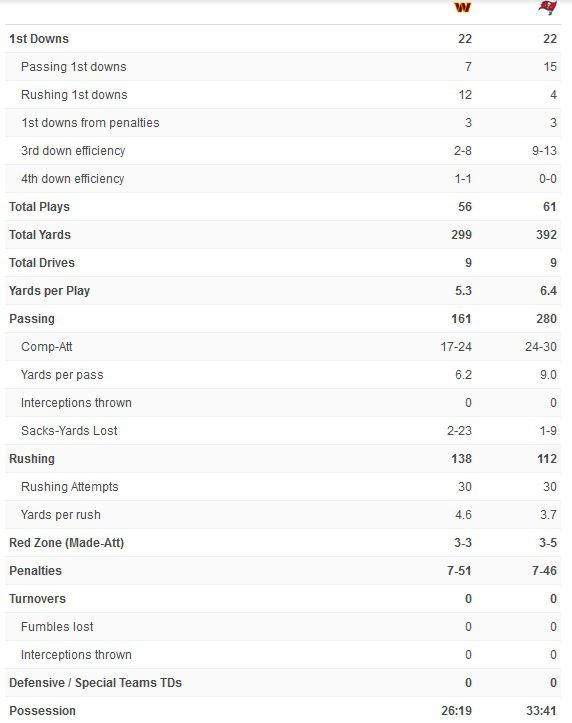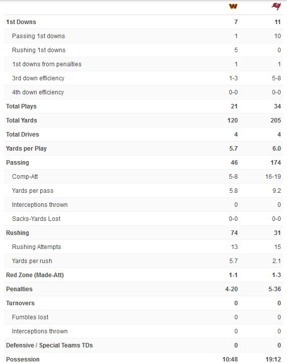 Washington’s defense did a pretty good job to limit the Buccaneers to 78 yards and 6 points on the first two drives. The Washington offense, however, needed to get on track.
