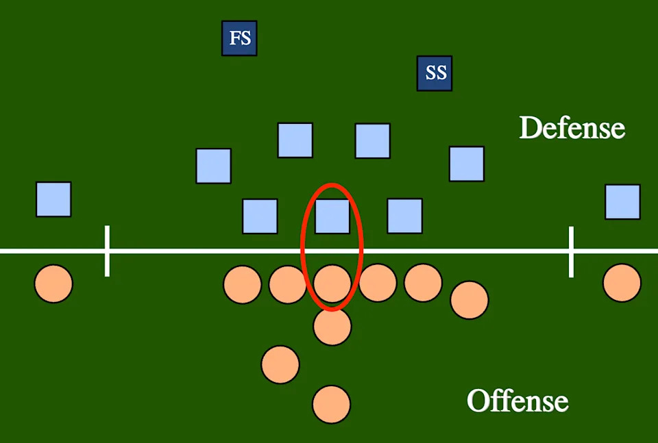 If the center could not block the nose tackle one on one, a guard would need to help on a double team. That meant the guard couldn’t block the guy he was assigned to block. It led to a domino effect of failure for the offense.