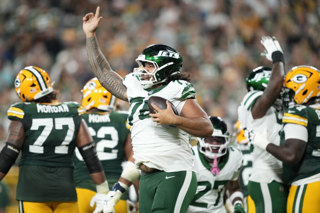 Saturday’s victory over the Green Bay Packers was a preview. With Williams and training camp favorite Byron Cowart both out, New York got to see more of Jay Tufele and Leonard Taylor. In a near-flawless first half, Tufele stood out the most on defense. The former Cincinnati Bengals defensive tackle stole the show with three tackles, two quarterback hits, one and a half sacks, and recovered a fumble for a touchdown. The ex-USC Trojan is looking for an opportunity for snaps in the defensive rotation. Meanwhile, 2024 UDFA Leonard Taylor was disruptive as well. It was Leonard Taylor’s sack on Malik Willis in Green Bay’s end zone that led to Jay Tufele’s touchdown.