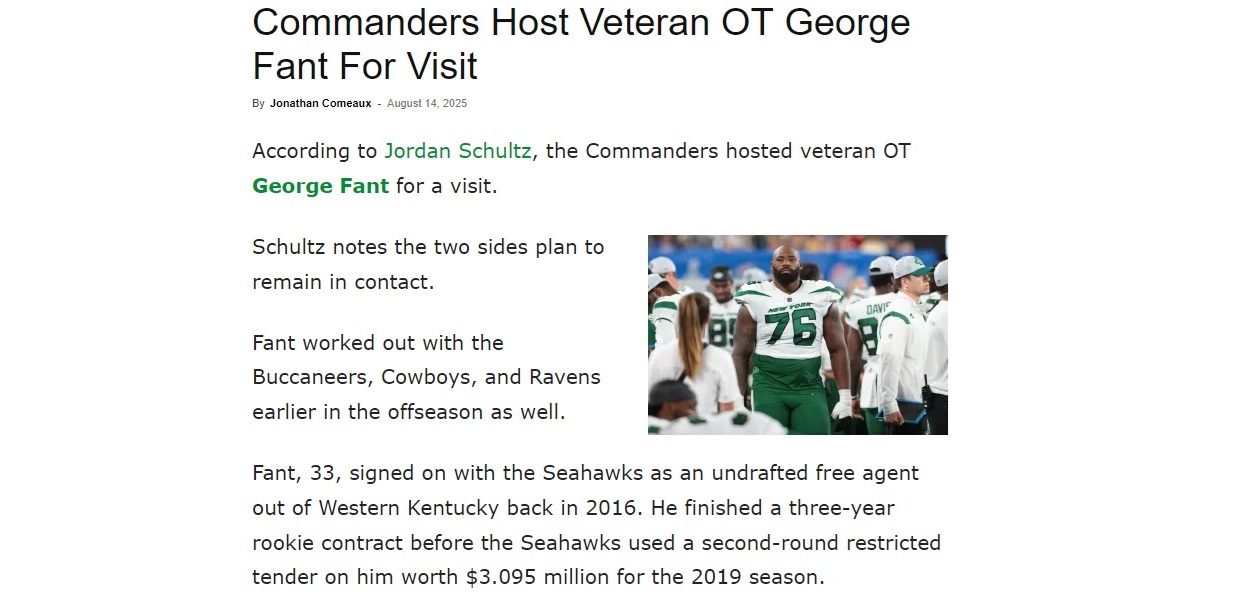 The Commanders have high expectations for the 2025 season, and protecting star quarterback Jayden Daniels while opening running lanes will be central to their success. With Allegretti in the mix, the offensive line has a leader who understands what it takes to compete at the highest level. His presence brings both immediate performance benefits and a long-term cultural shift toward professionalism and preparation.