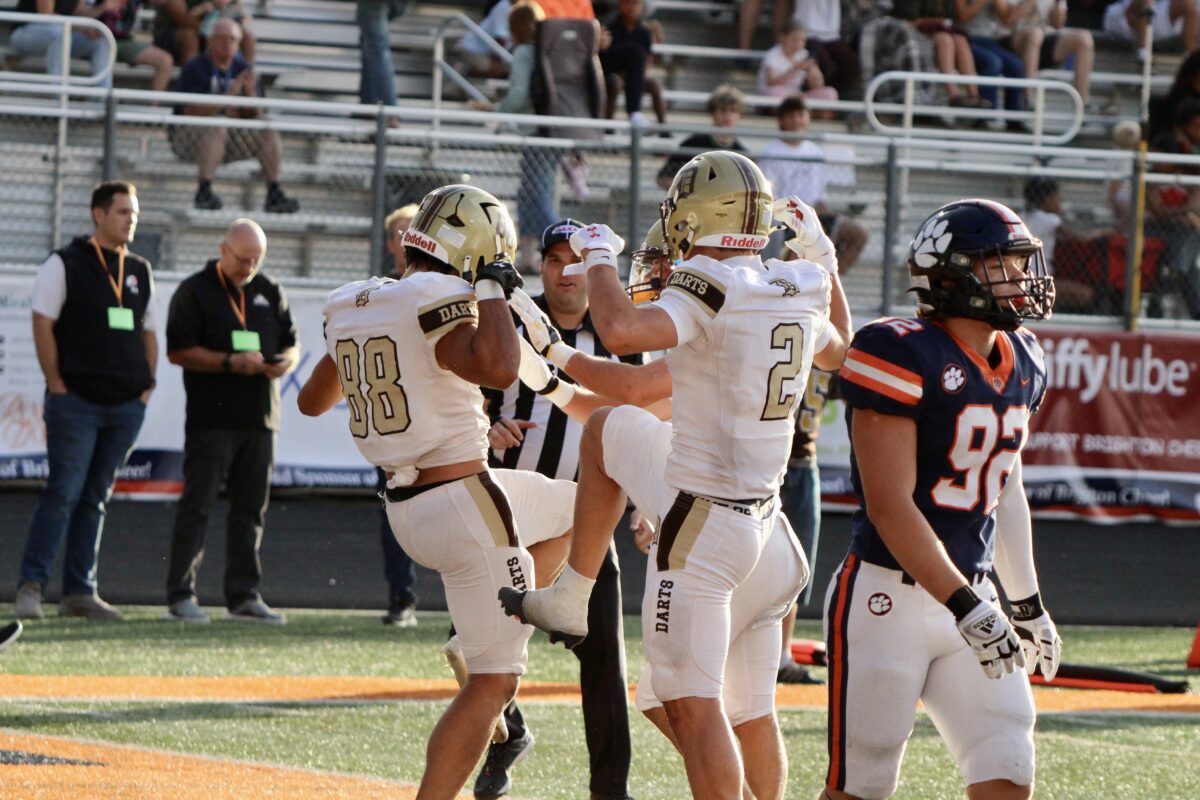 With the clock running, the second half saw Palepoi manage one touchdown pass in each quarter. The fourth quarter also featured Bessinger’s first rushing touchdown and the final Davis score of the night on a 19-yard keeper; Bessinger led the Darts with 44 of the team’s 59 total rushing yards.