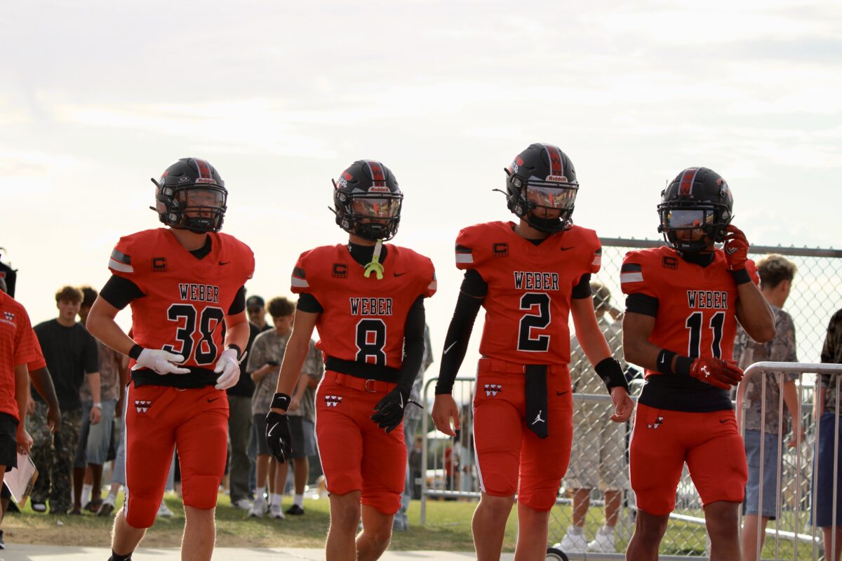 Weber captains walk onto the field before a nonregion football contest vs. Fremont on Friday, Aug. 15, 2025 in Pleasant View.