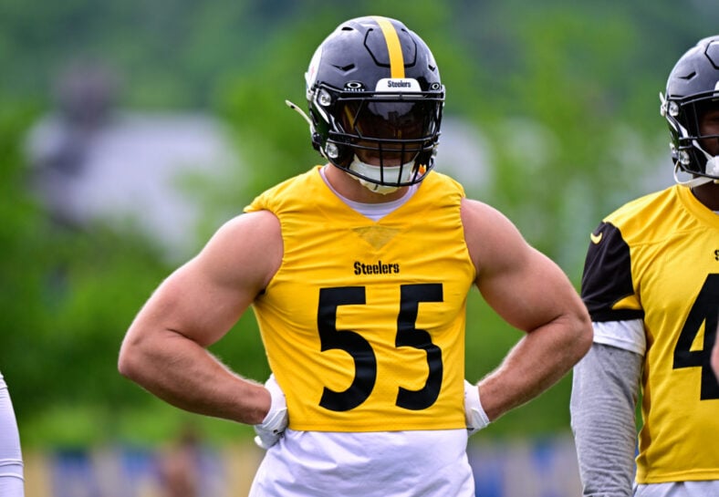 Pittsburgh Steelers linebacker Cole Holcomb at practice on May 27, 2025. — Ed Thompson / Steelers Now