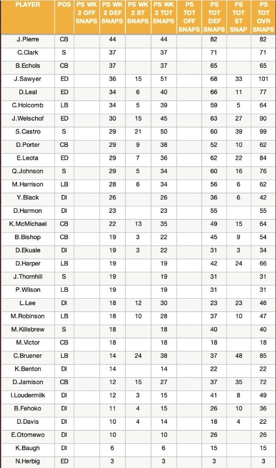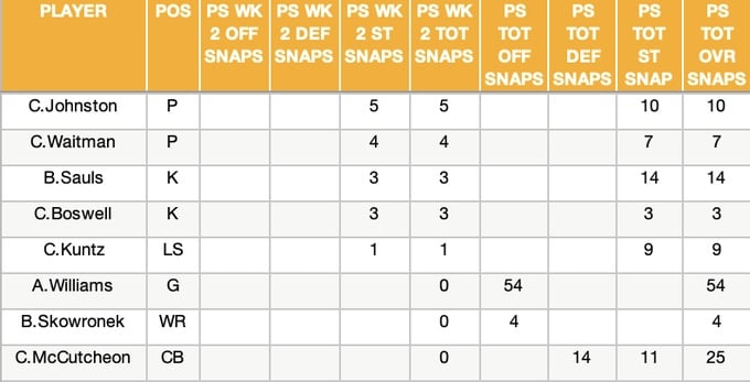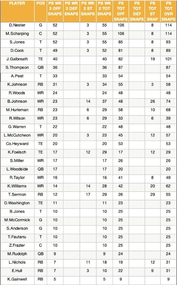 Preseason Snap Leaders Through Week Two