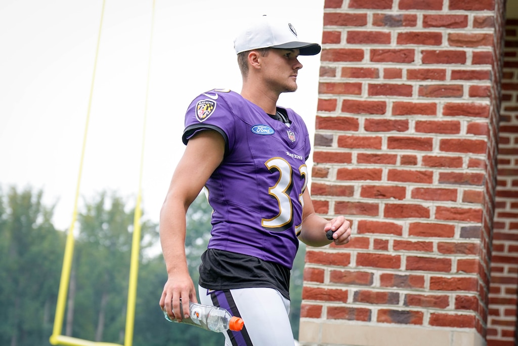 Place kicker Tyler Loop leaves the practice field. (Ulysses Muñoz/The Baltimore Banner)