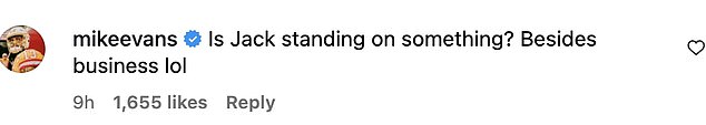 ‘Is Jack standing on something? Besides business lol,’ joked Mike Evans, Brady’s former Buccaneers teammate.